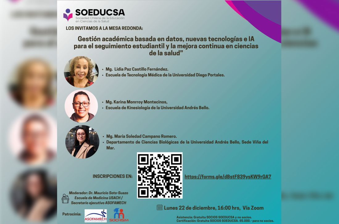 ✅ Mesa redonda “Gestión académica basada en datos, nuevas tecnologías e IA para el seguimiento estudiantil y la mejora continua en ciencias de la salud”